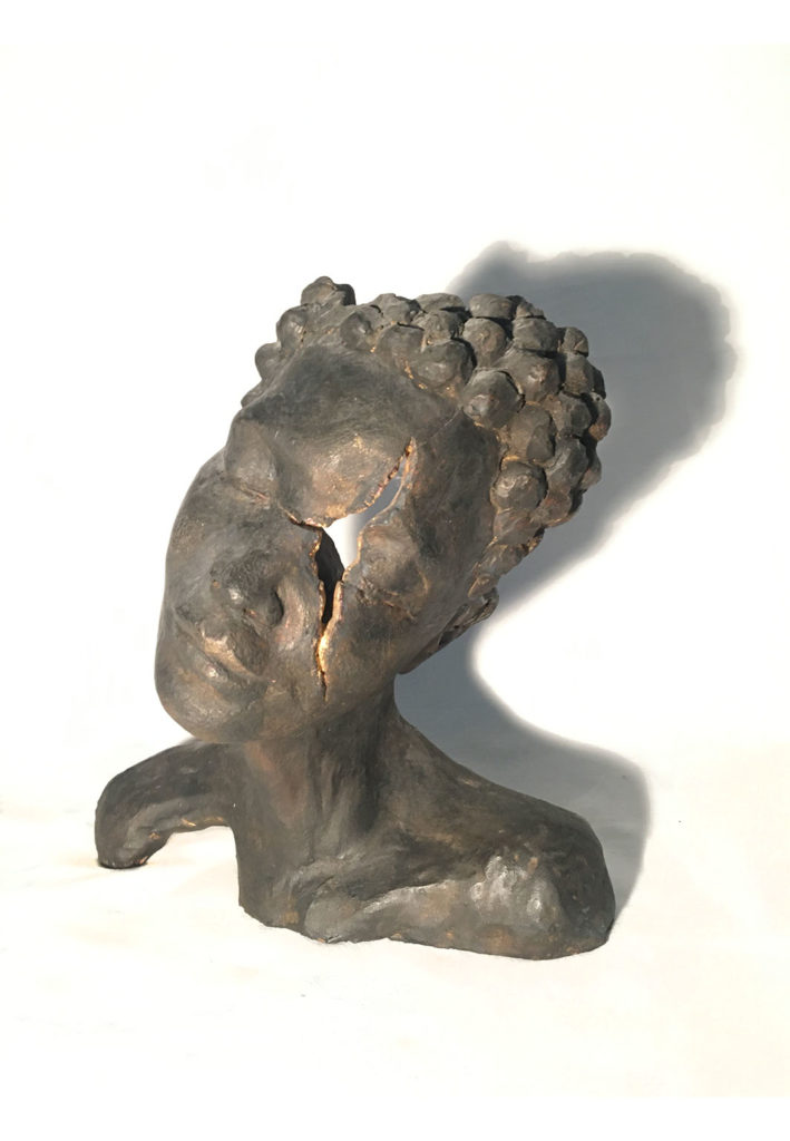 To pay tribute to the resilience of women and their ability to overcome and transcend difficulties, Valérie regenerates the material and gives it a second life. To do this, she uses materials that she recycles and transforms to give them a new dimension. Like the ordeals that leave traces in the flesh as in the soul, her works are marked: the cracks in the earth, the sutures in the raw framework of the meshwire. The play of shadows and light reveals past wounds: their faces, their bodies bear these scars but what emerges is a serenity, even a disconcerting lightness, as if beauty supplanted suffering. A messenger of optimism, Valérie takes you on her quest for life by telling you the story of these inspiring beings who have rebuilt themselves in hope, without trying to hide the traces of life.
